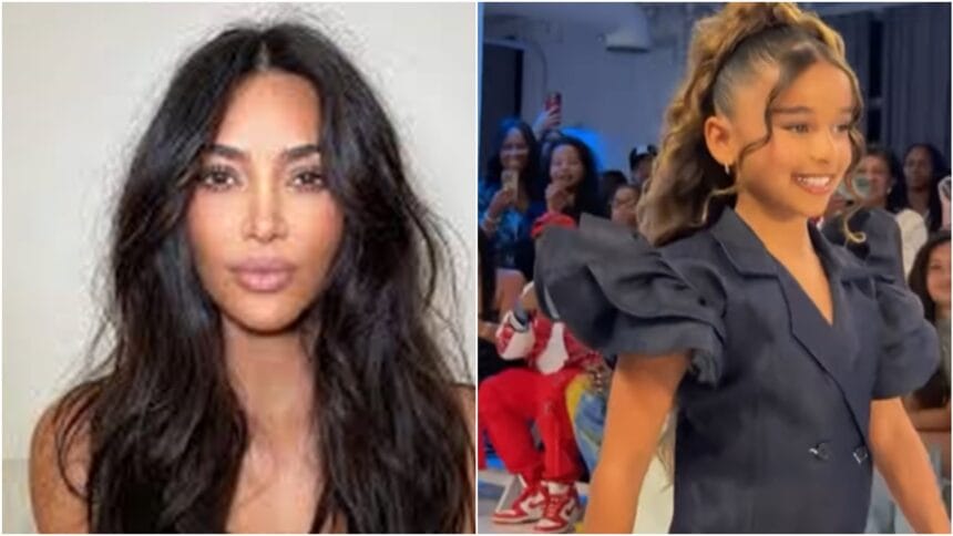 Filha de Rob Kardashian, irmão de Kim, Dream desfilou pela segunda vez na NYFW. Ela fez sua estreia em 2024 pela marca Zeus & Lexi Kids. Desta vez, em Manhattan, a jovem modelo chamou atenção com um vestido azul marinho de mangas bufantes e fenda frontal, que lembrava um blazer, completo com quatro botões na frente.