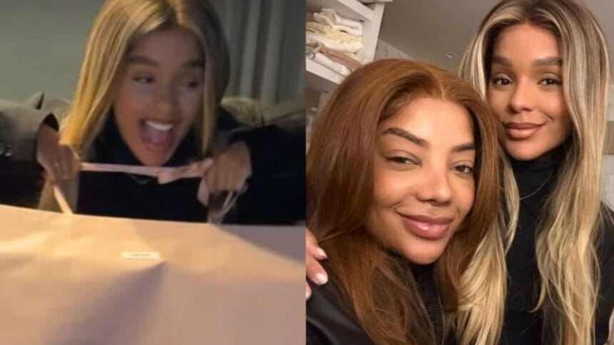Brunna também presenteou Ludmilla com uma sacola da Balenciaga, mas preferiu manter o conteúdo em segredo, alimentando a curiosidade dos fãs. Além da troca de presentes, as duas aproveitaram a noite em uma celebração intimista organizada por Silvana Oliveira, mãe da cantora, que recebeu o casal para uma festa reservada.