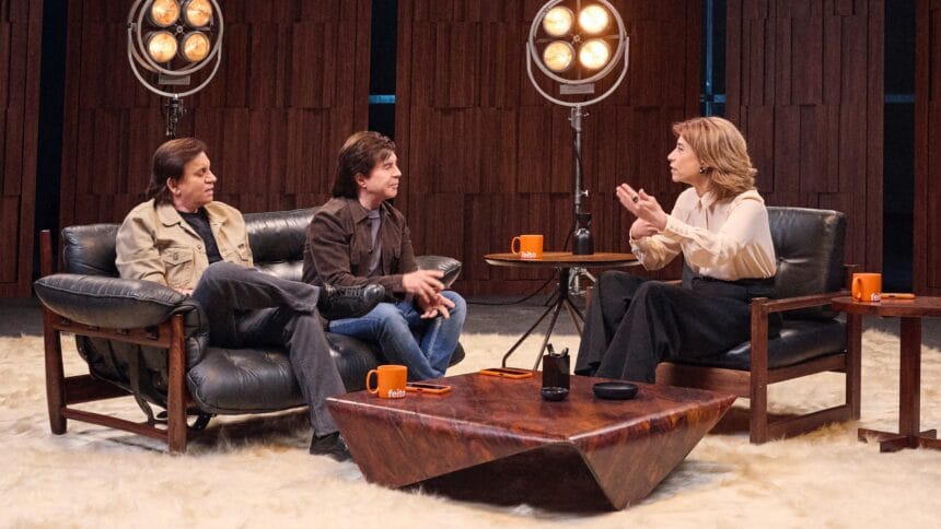 No segundo episódio da série “Tá Feito com Fernanda Torres”, que foi ao ar nesta terça-feira (17), os convidados foram Chitãozinho & Xororó, nomes fundamentais da cultura brasileira que, há mais de cinco décadas, representam a música sertaneja no Brasil e no exterior. Em uma conversa íntima com Fernanda, a dupla relembra a infância em Astorga (PR), os primeiros shows, o primeiro cachê, a compra da primeira casa e a relação que cada um desenvolveu com o dinheiro ao longo da vida. Veja episódio completo abaixo!