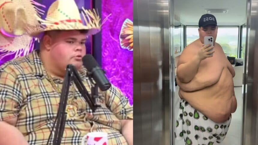 O influenciador conhecido como Gordão da XJ revelou ter eliminado quase 100 quilos desde que decidiu mudar radicalmente seus hábitos. Aos 20 anos, ele chegou a pesar 349 kg, mas recentemente afirmou estar com cerca de 253 kg, número que já teria sido superado com novos quilos eliminados.