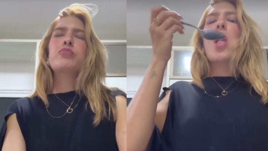 Nos stories, Lore mostrou que tem sentido vontade de comer banana com leite em pó. “Aqui eu não quero saber de mais nada da vida. Meu desejo ultimamente tem sido esse”, escreveu. A artista mostrou ainda o passo a passo da combinação: descascar a banana, morder e colocar uma colher de leite em pó na boca. “Galera, só contar pra vocês rapidão aqui o que tenho feito todos os dias da minha vida ultimamente. Minha boca chega salivar”, contou.
