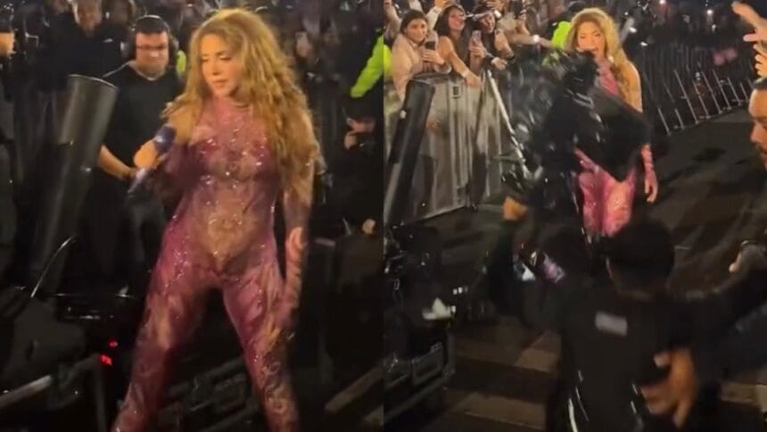 A estrela colombiana Shakira se viu no centro de uma polêmica digital após uma reação, considerada por muitos como “gelada”, durante sua última apresentação ao vivo. Um vídeo que circula no X mostra o exato momento em que um cinegrafista, que acompanhava a cantora em um corredor no meio da multidão, tropeça em equipamentos e cai estatelado no chão.